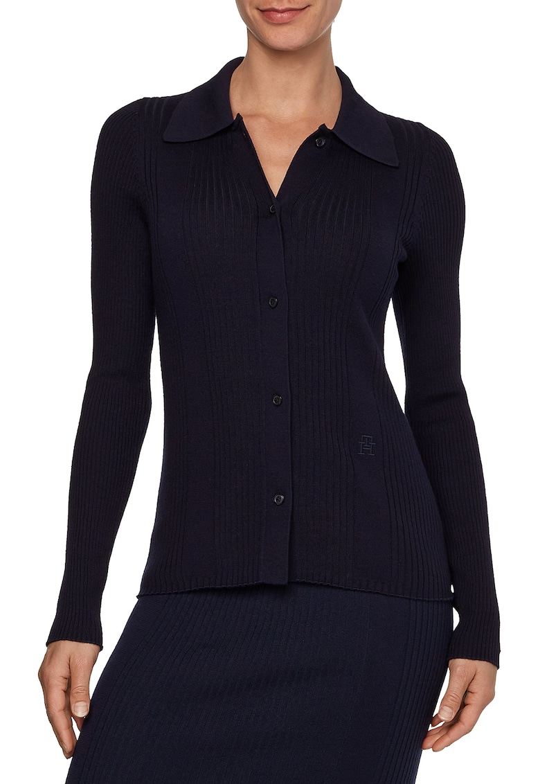 Pulover polo din amestec de lana si lyocell - Bleumarin