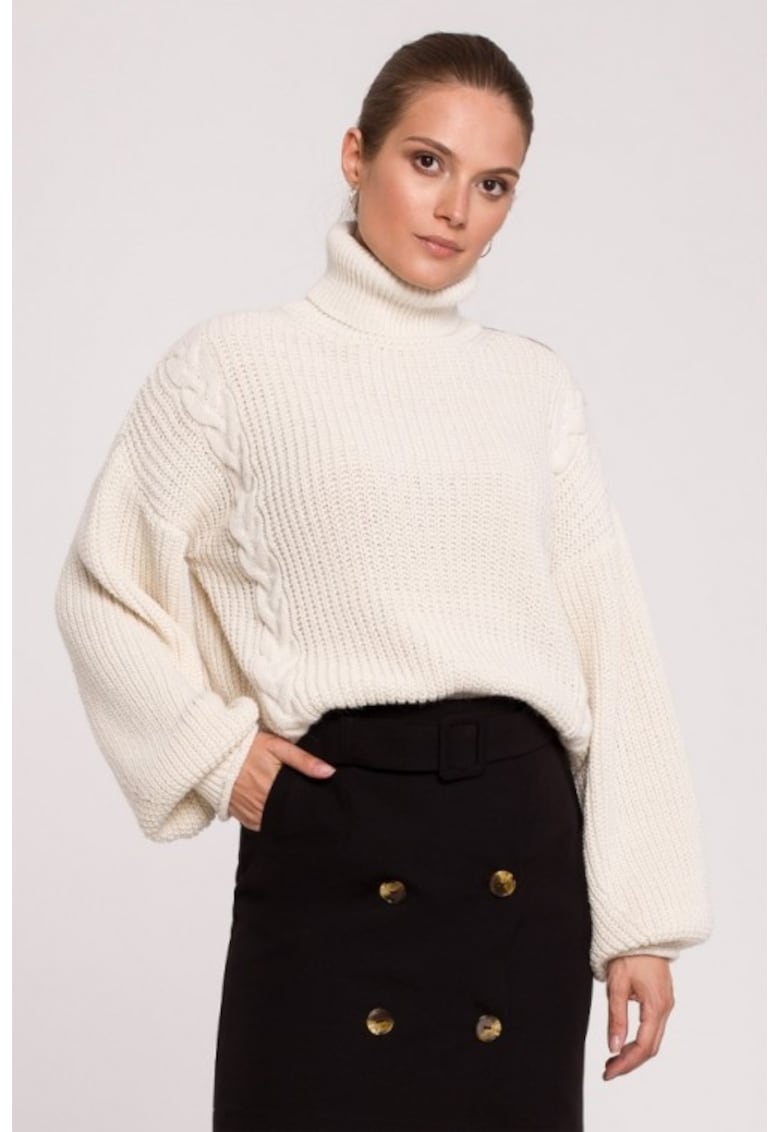 Pulover scurt cu guler inalt - Ecru