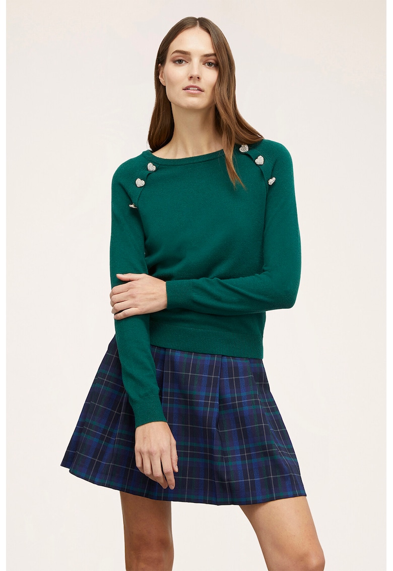 Pulover tricotat fin din amestec de lana cu maneci raglan - Verde englez