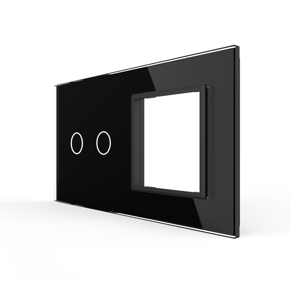 Rama intrerupator dublu + priza simpla Livolo VL-P702/E-4B, sticla securizata, negru