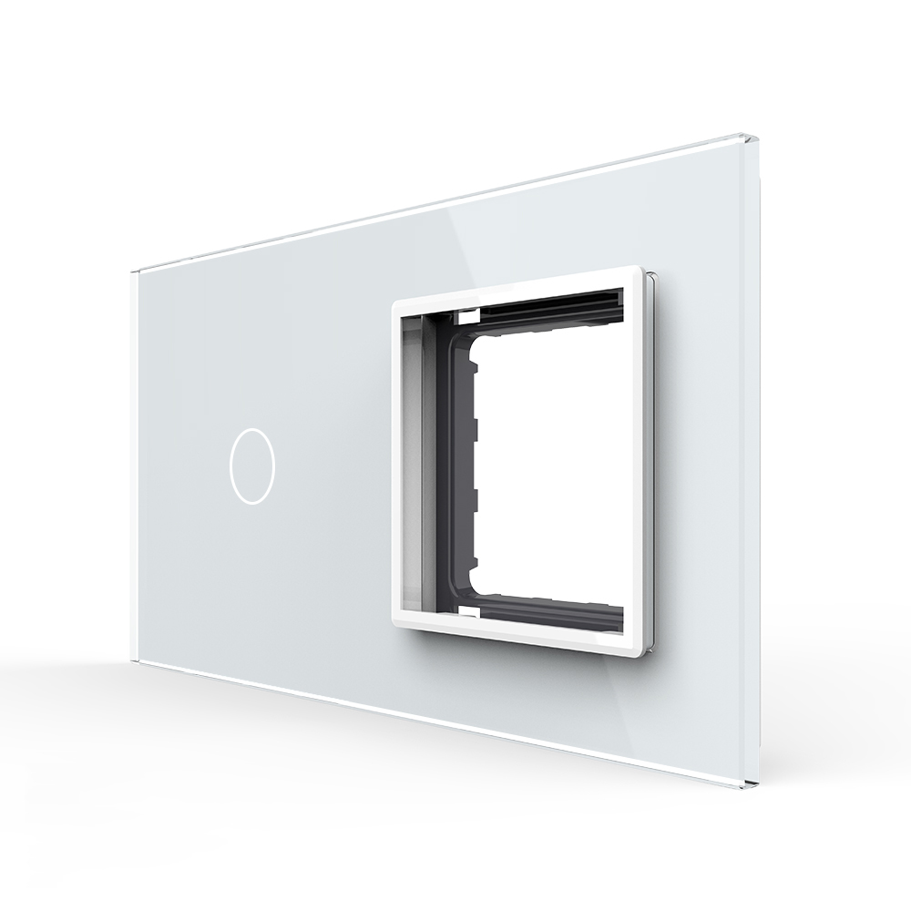 Rama intrerupator simplu + priza simpla Livolo VL-P701/E-4W, sticla securizata, alb