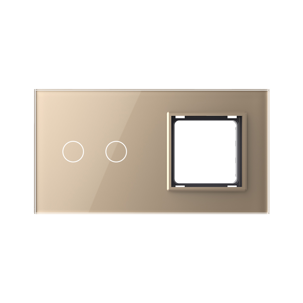 Rama pentru intrerupator dublu + priza simpla Livolo, rama din sticla, incastrat, auriu