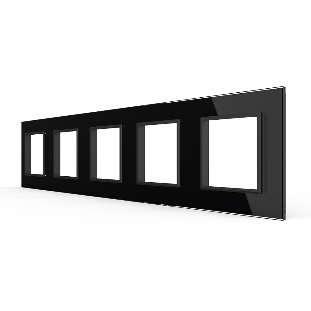 Rama priza cvintupla Livolo VL-P7E/E/E/E/E- 10B, sticla securizata, negru