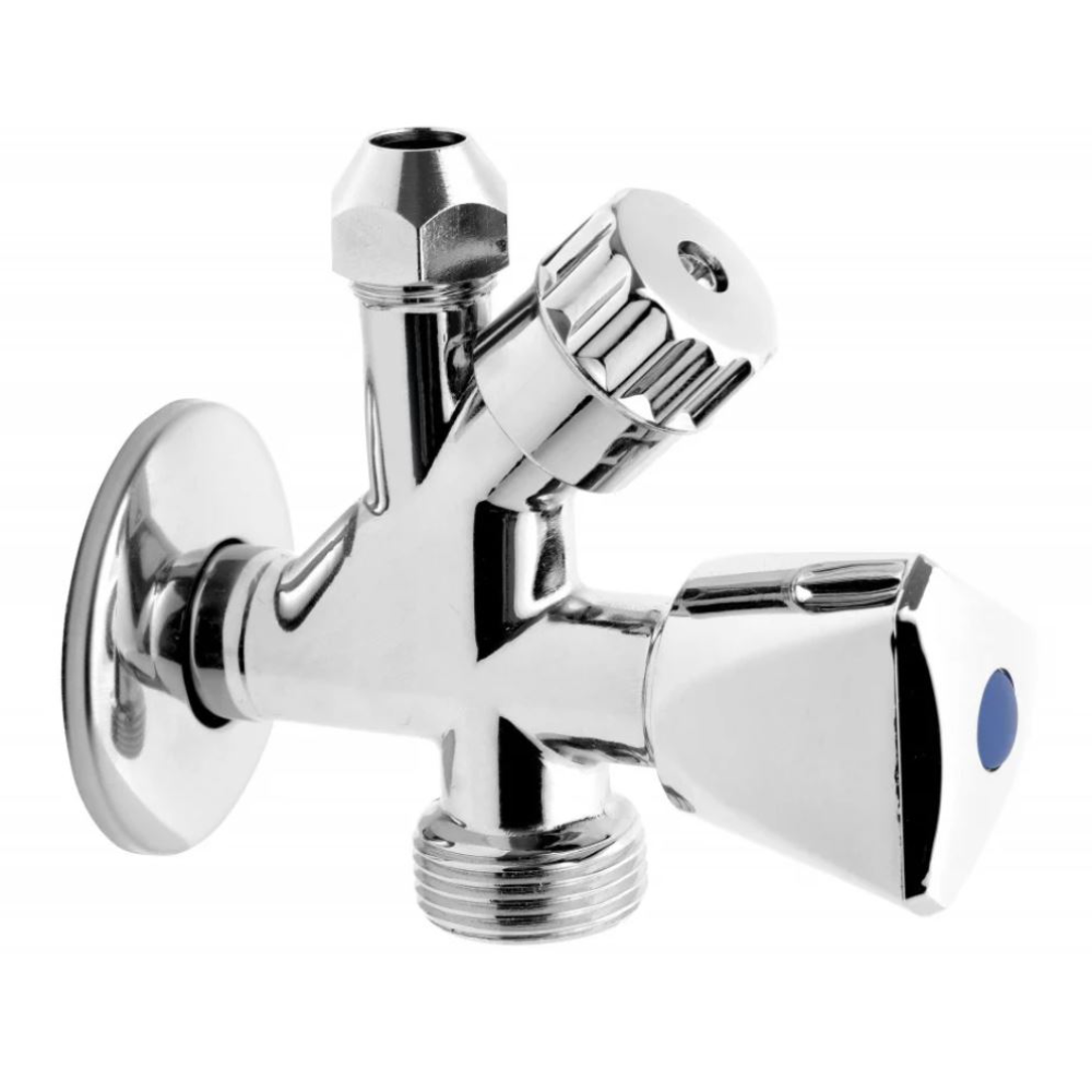 Robinet coltar in unghi combinat Ferro CF5105, filet exterior-exterior, alama, argintiu, 1/2 x 3/4 x 1/2