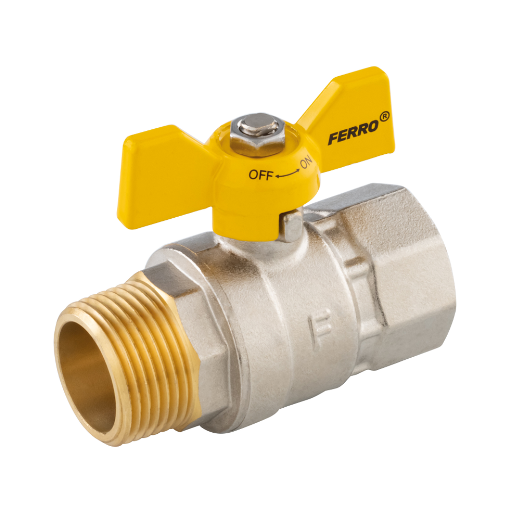 Robinet cu bila pentru gaz Ferro KGMS21, alama, filet interior-exterior, tip G18, racord 3/4 inch