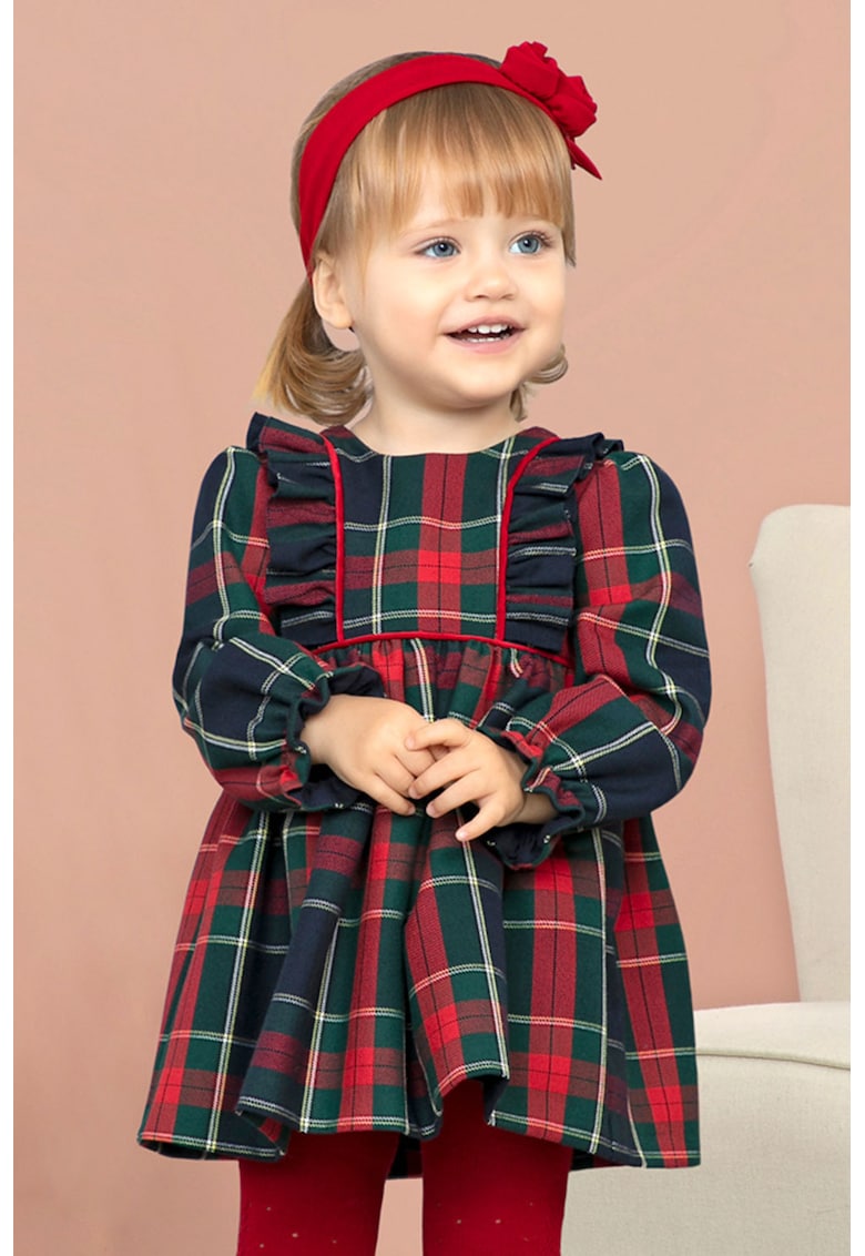 Rochie baby-doll cu model tartan - Visiniu/Negru