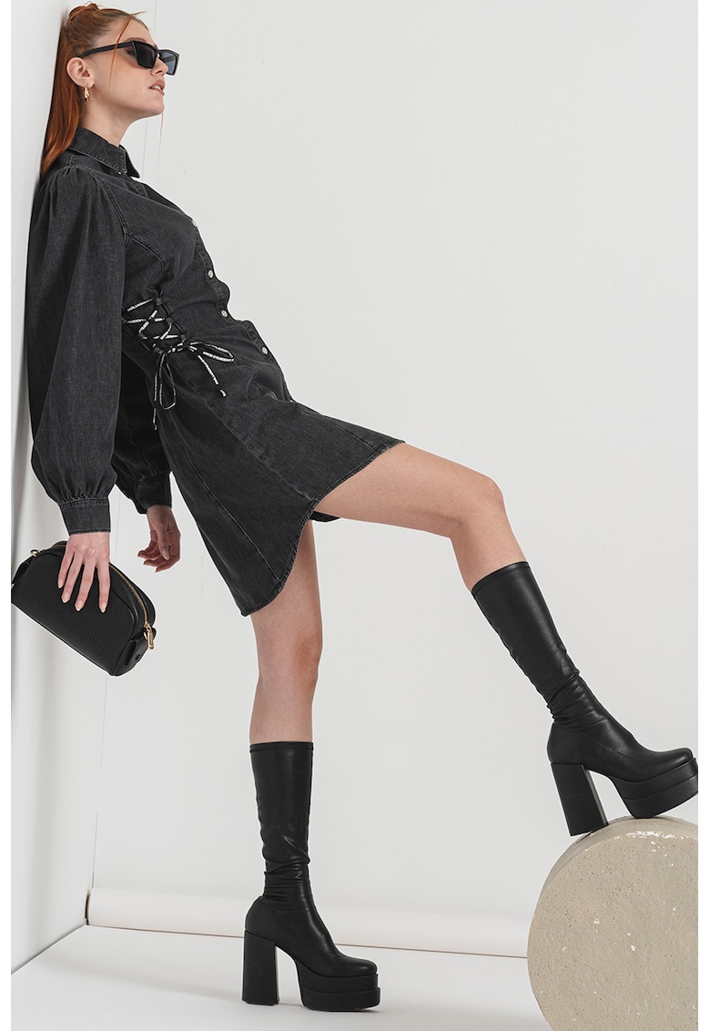Rochie-camasa din denim cu talie ajustabila - Negru stins