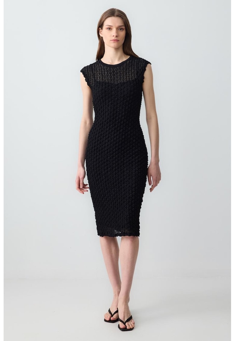 Rochie cambrata cu decolteu la baza gatului - Negru
