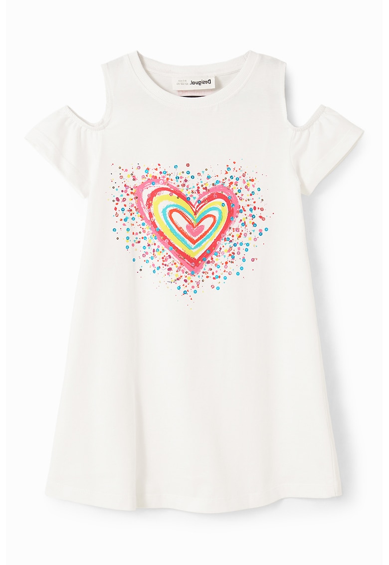 Rochie cu umeri decupati si aplicatii cu paiete - Alb