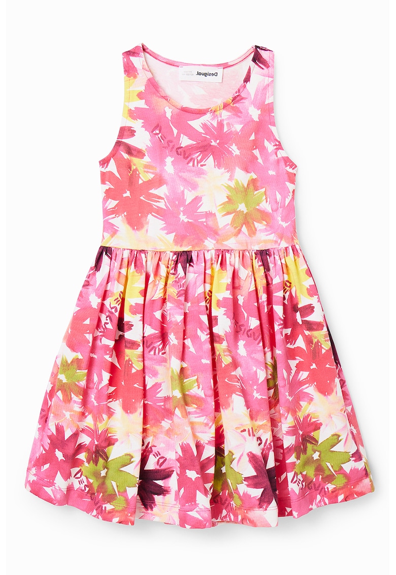 Rochie de bumbac cu model floral - Rosu/Alb/Roz