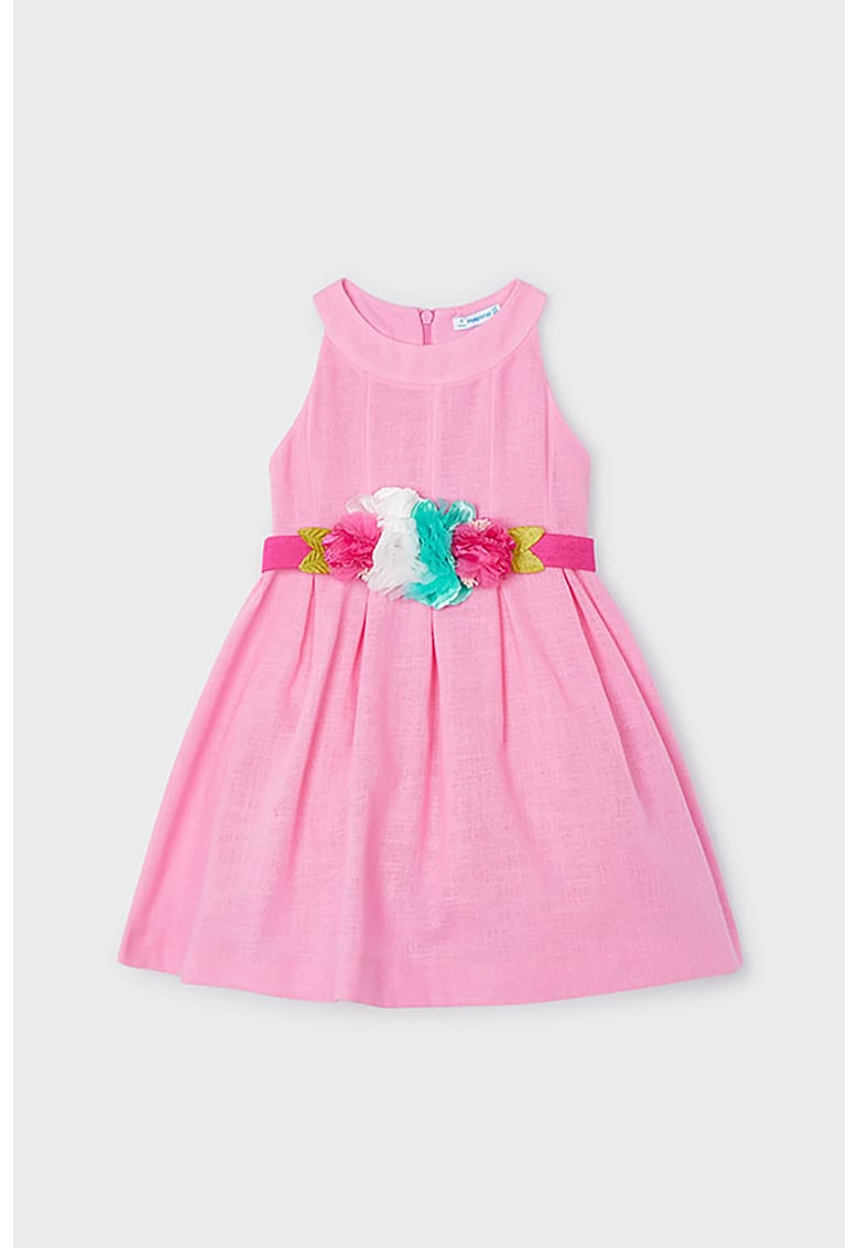 Rochie evazata cu aplicatii frontale - Rosu/Verde/Roz pastel
