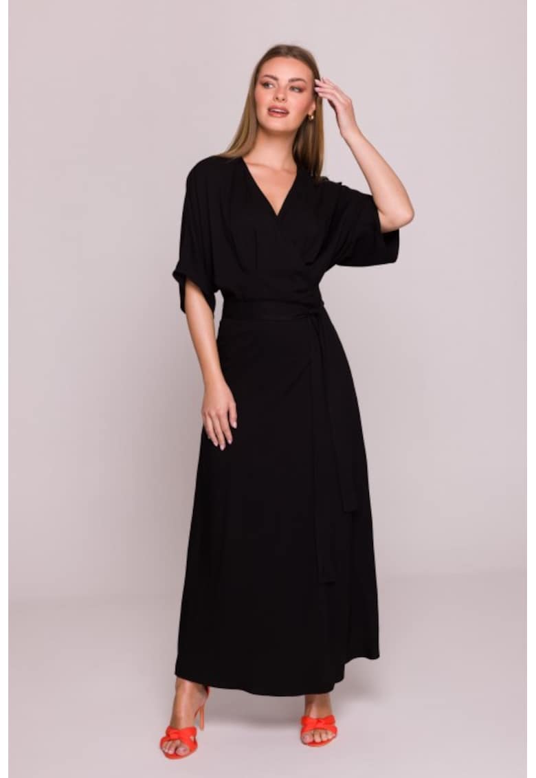 Rochie petrecuta maxi cu curea in talie - - Negru