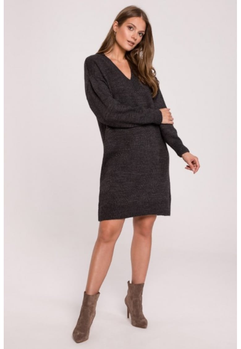 Rochie tip pulover cu decolteu in V - - Gri inchis