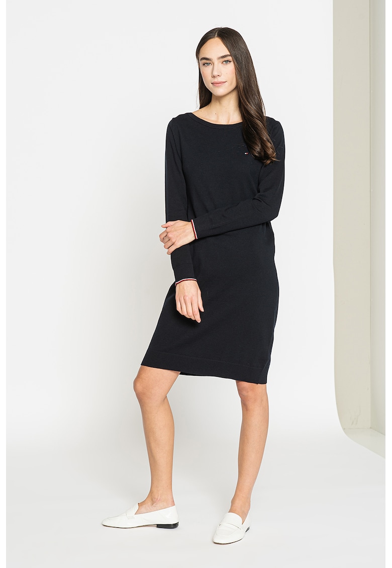 Rochie tip pulover din bumbac organic cu broderie logo discreta - Negru