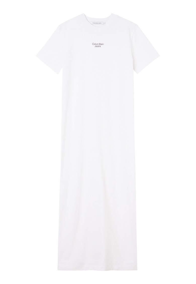 Rochie tip tricou de bumbac organic cu slituri laterale - Alb