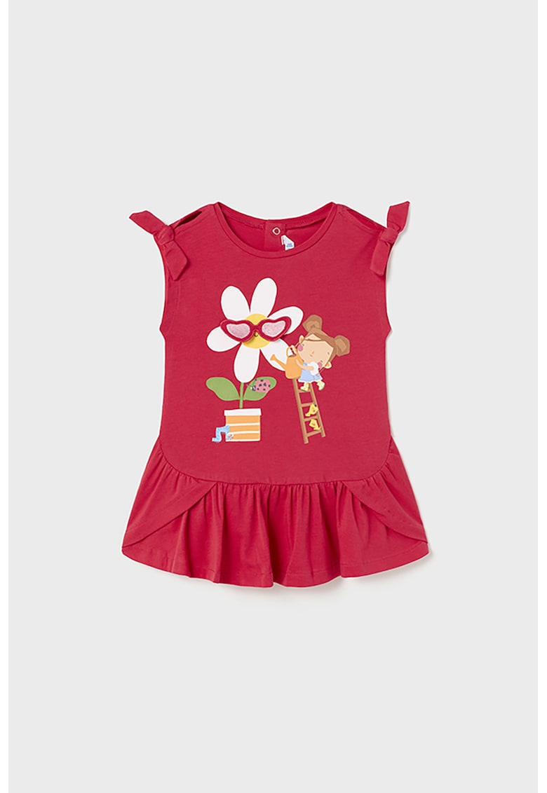 Rochie-tricou cu imprimeu floral - Rosu