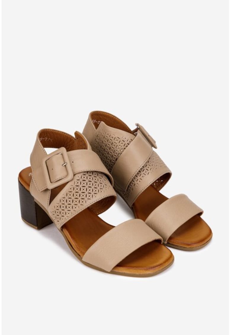 Sandale dama taupe din piele cu model perforat