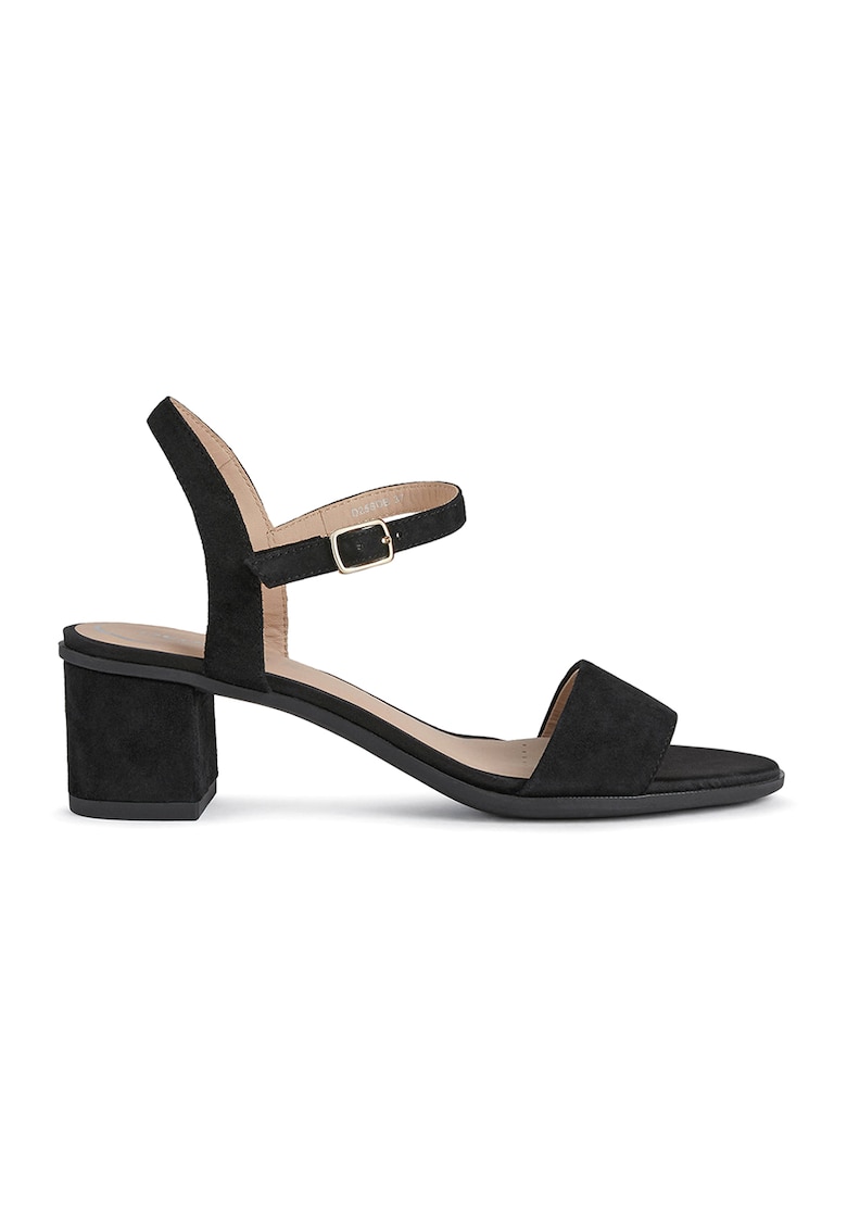 Sandale de piele intoarsa cu toc masiv - Negru