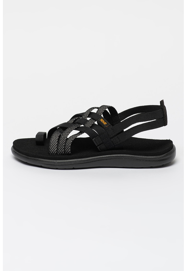 Sandale din material textil cu barete multiple si bareta pe deget Voya