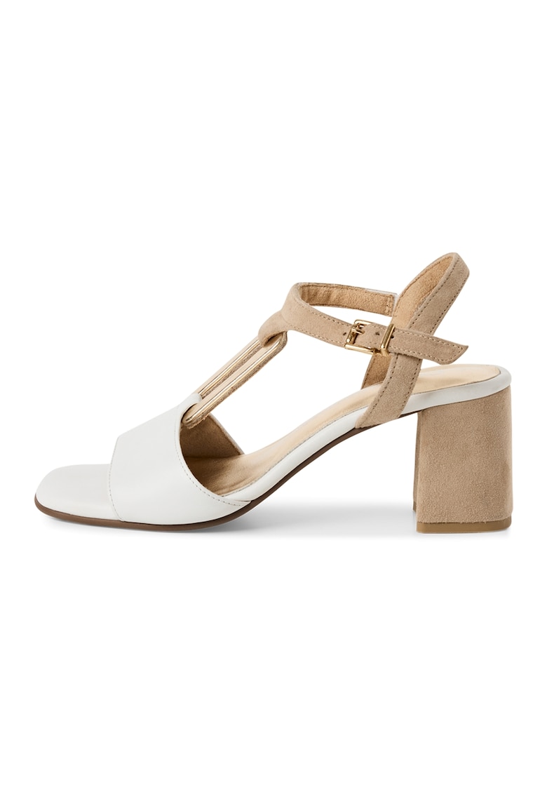 Sandale din piele cu toc masiv - Alb/Auriu/Maro camel