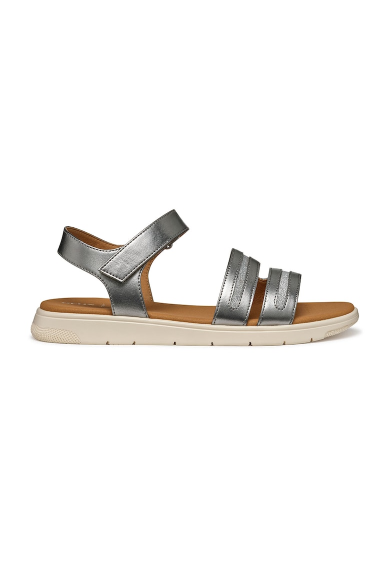 Sandale din piele ecologica cu inchidere velcro - Argintiu inchis