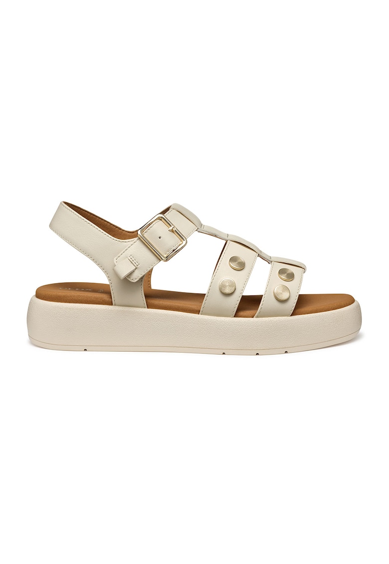 Sandale din piele ecologica cu platforma si detalii metalice - Maro nisip