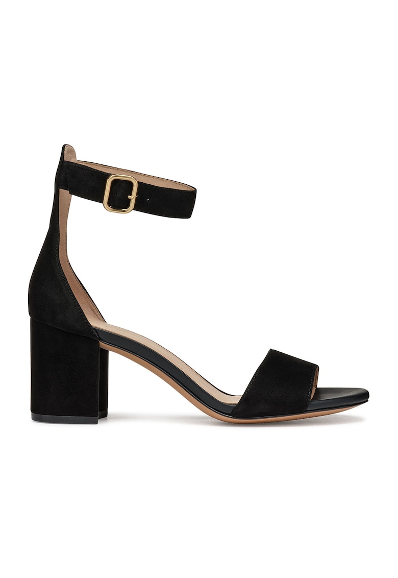 Sandale din piele intoarsa cu toc si catarama pe glezna - Negru