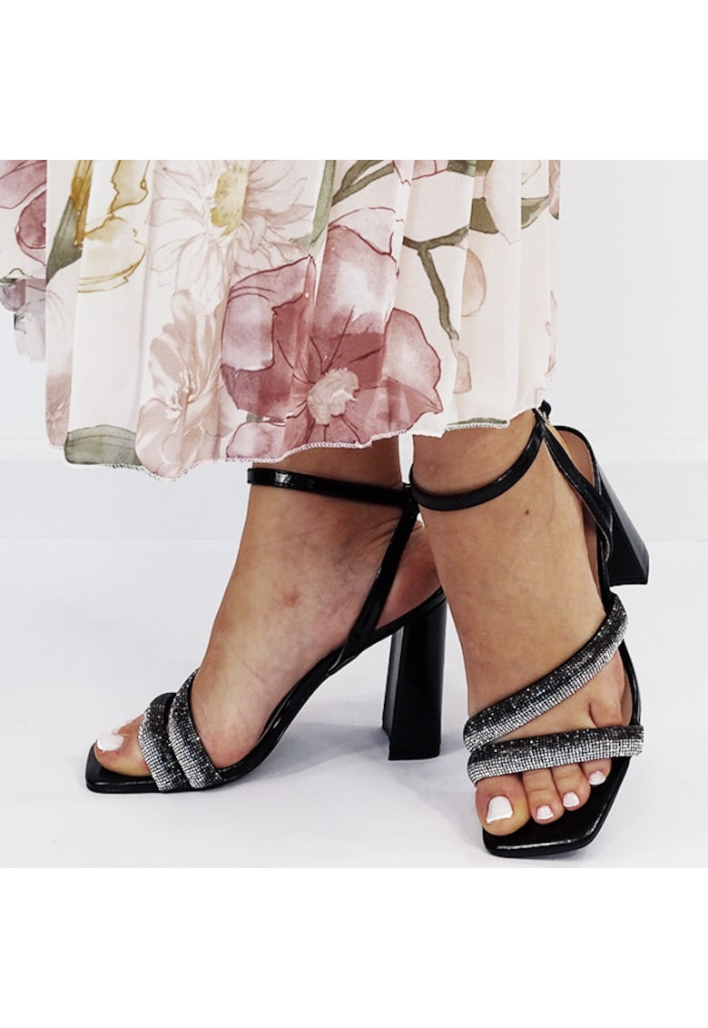 Sandale elegante negre cu pietricele BZF8778 M12 17392 - Negru