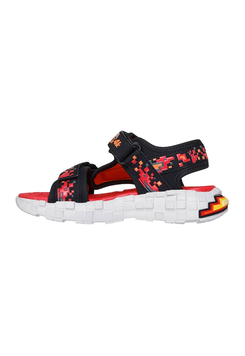 Sandale Mega Craft cu velcro si talpa plata - Negru/Portocaliu