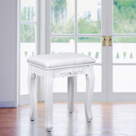 SCA103 - Scaun tapitat Alb cu Trandafiri masa toaleta taburet machiaj