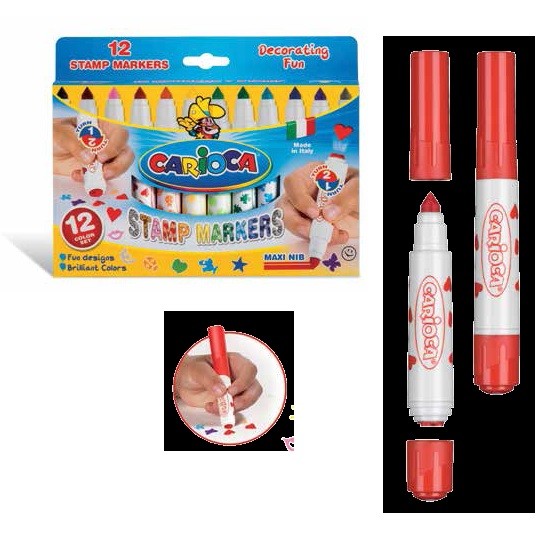 Set 12 markere lavabile, cu 12 stampile diverse forme, cutie carton, CARIOCA Stamp markers