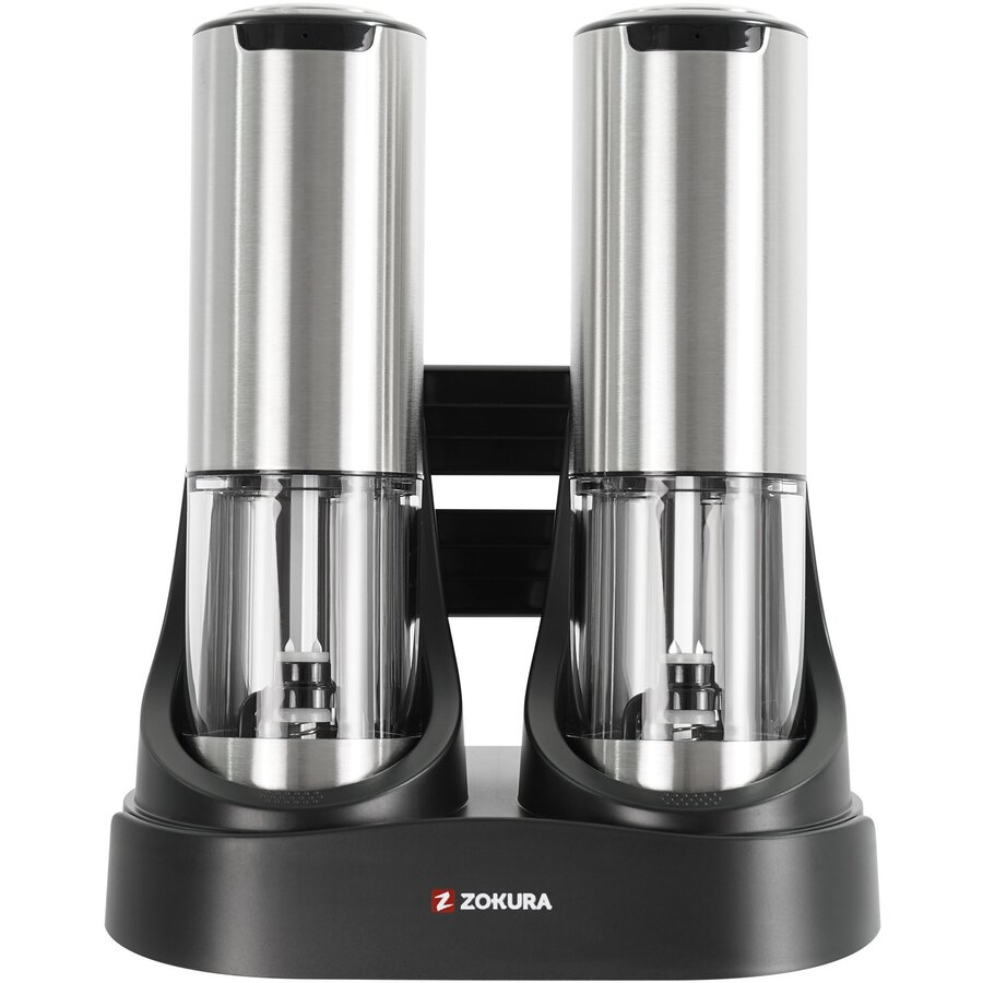Set 2 Rasnite pentru Sare si Piper Z1423 cu Baza de Incarcare Inox/Negru