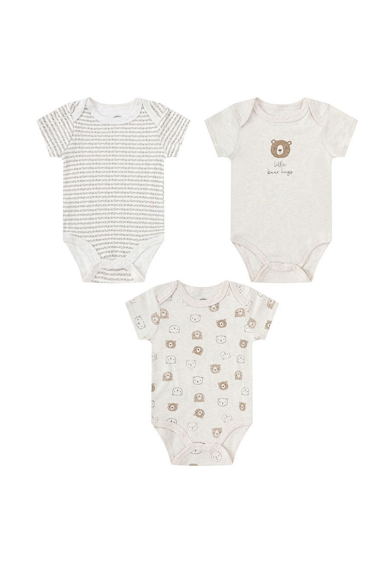 Set 3 body-uri din bumbac pentru bebelusi - model ursulet - Alb crem