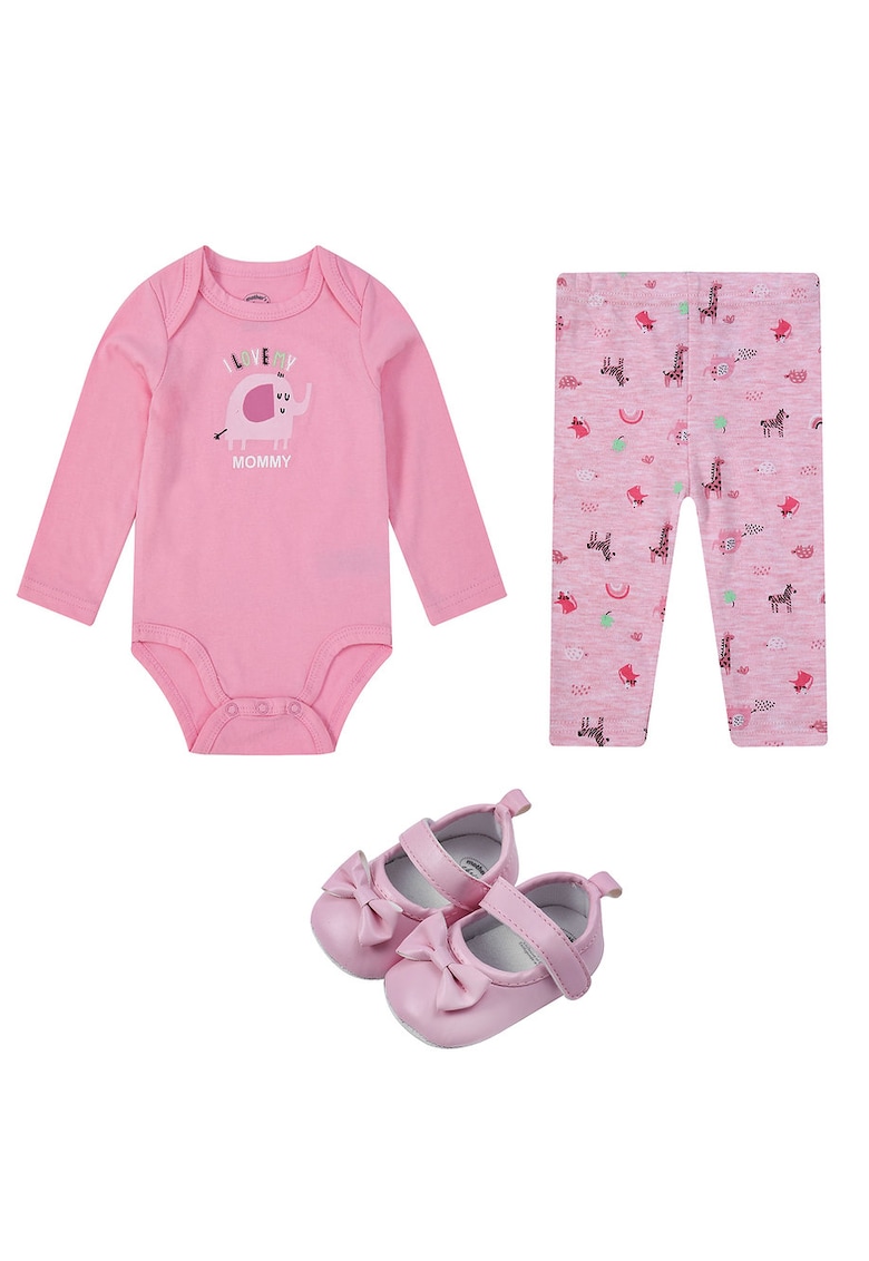 Set 3 piese din bumbac pentru bebelusi - I lobe my mommy - roz