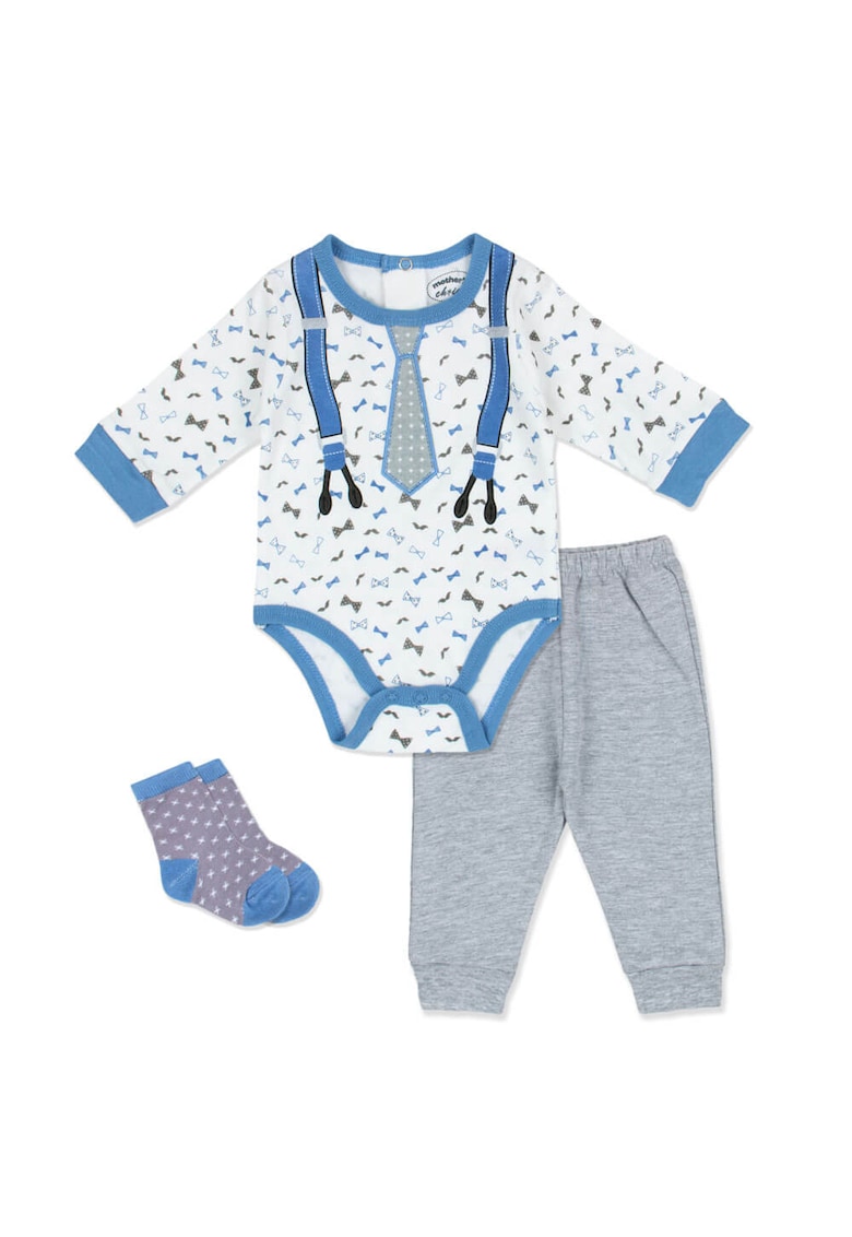 Set 3 piese pentru bebelusi - model bretele si cravata - Multicolor