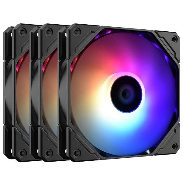 Set 3 ventilatoare ID-Cooling TF-12025 Pro 120mm negru iluminare aRGB, rulmenti de tip Hydraulic Bearing, sistem de montare anti-vibratii, 500-1800RPM, 82.5CFM, 35.2dBA, 2.55mmH2O, cablu plat, conector 4-pin PWM pentru ventilator si...