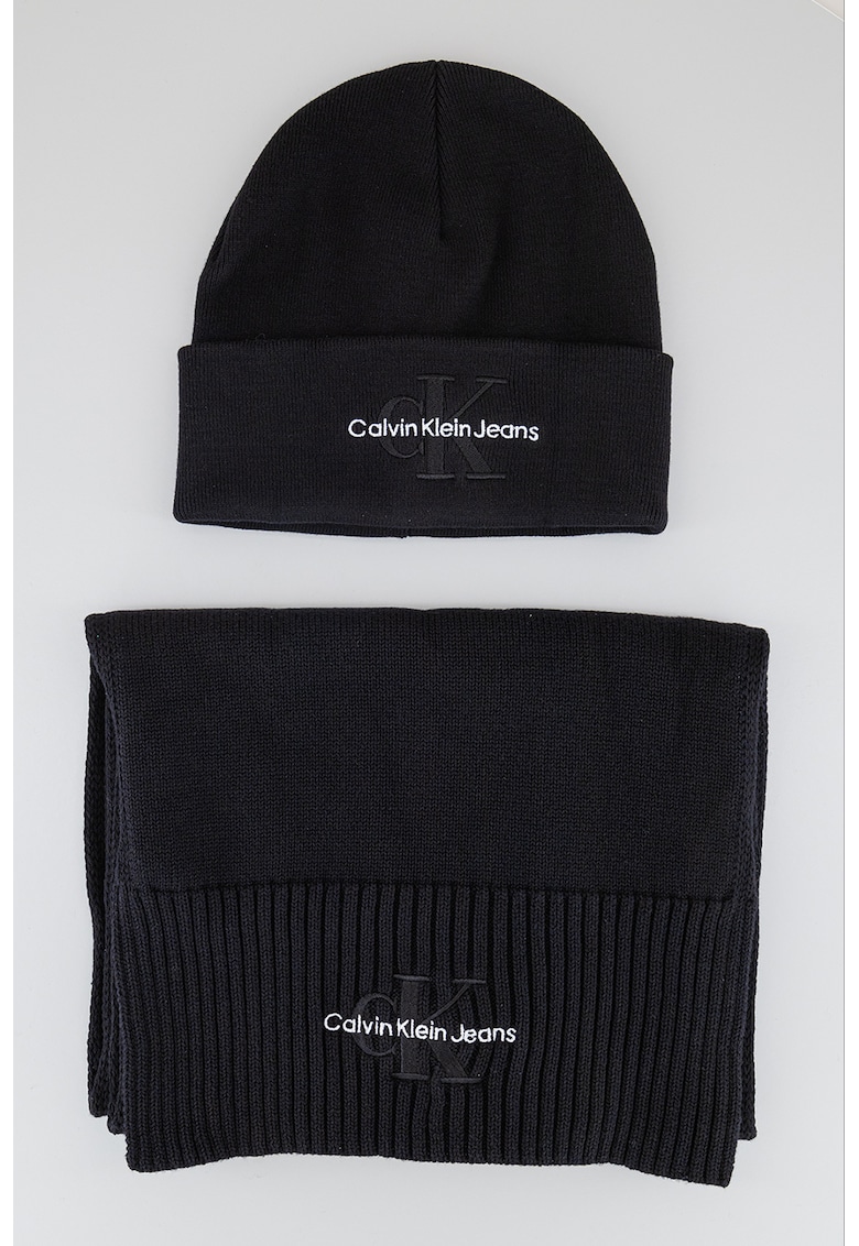 Set de caciula si fular din bumbac organic cu logo - 2 piese - Negru