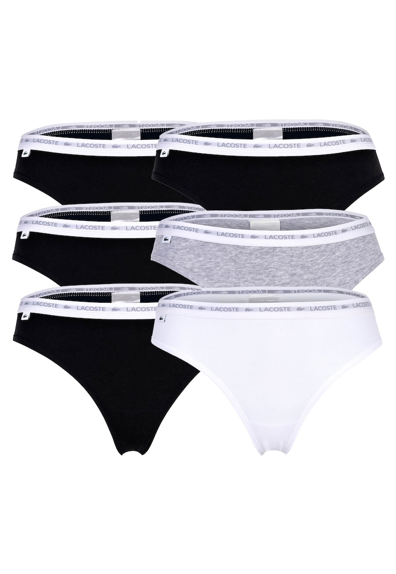 Set de chiloti tanga cu banda logo in talie - 6 perechi - Alb/Negru/Gri