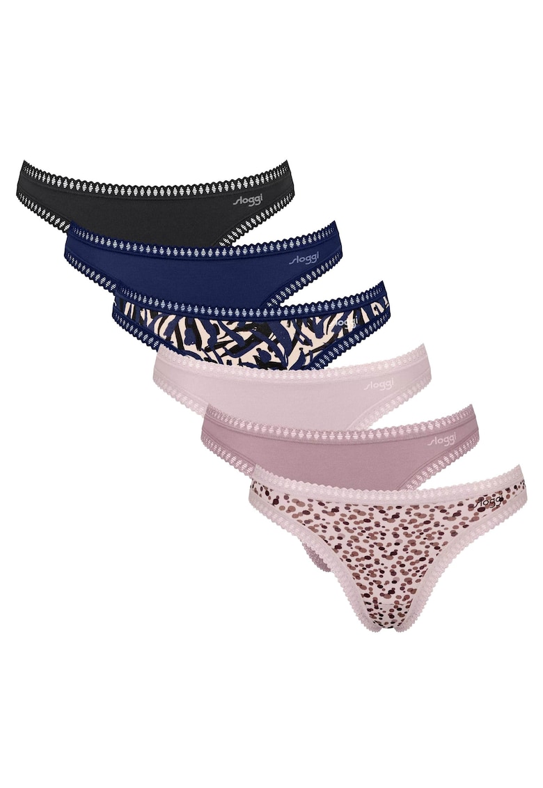 Set de chiloti tanga Go Crush - 6 perechi - Roz/Albastru