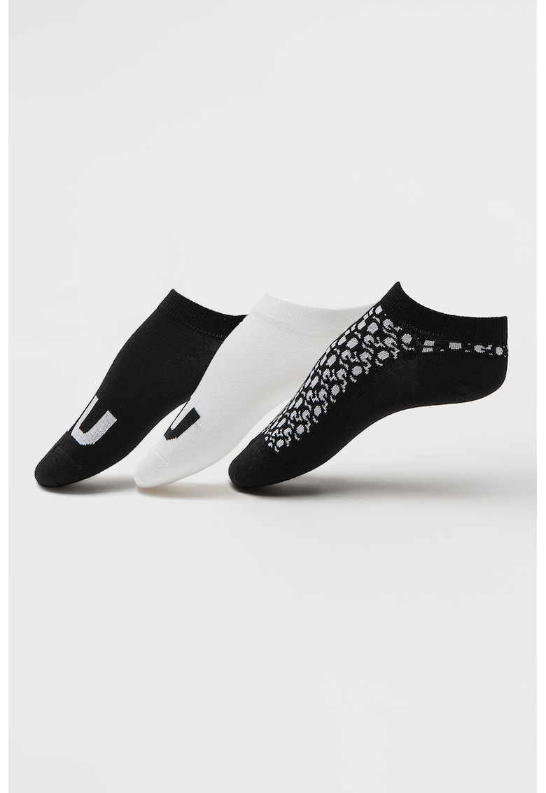 Set de sosete pana la glezna cu model logo - 3 Perechi - Negru/Alb optic
