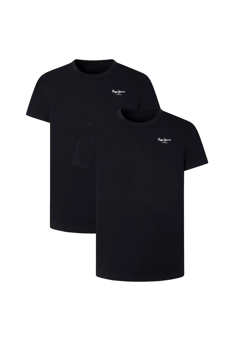Set de tricouri cu decolteu la baza gatului - 2 piese - Negru