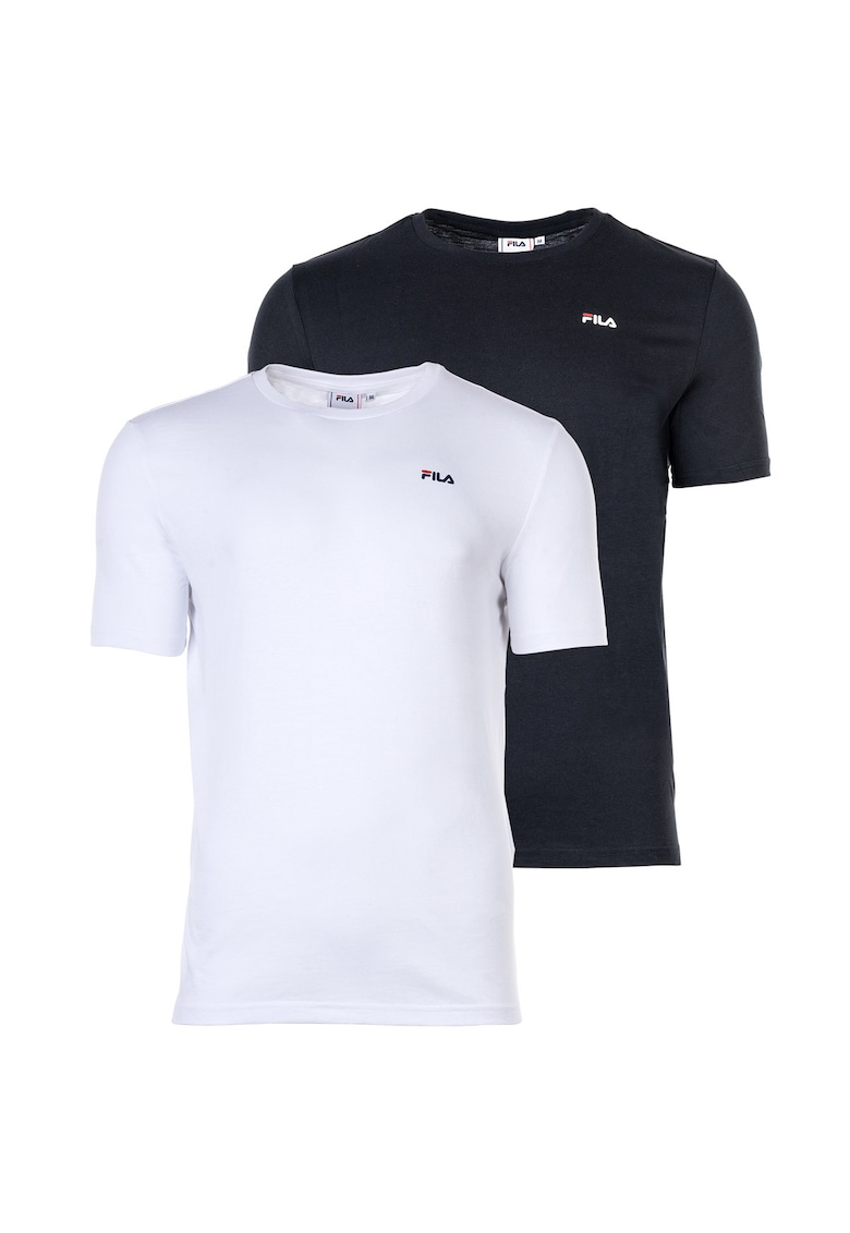 Set de tricouri cu decolteu la baza gatului si logo discret - 2 piese - Alb/Negru stins