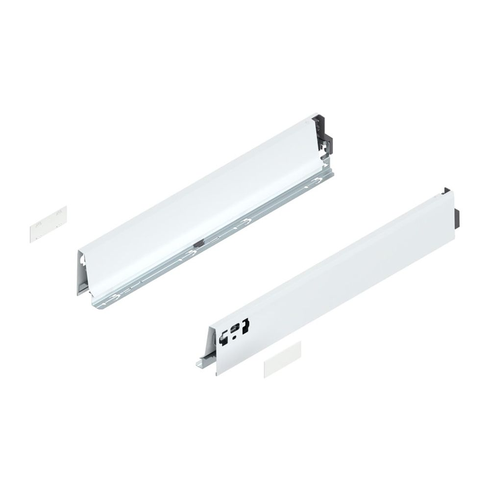 Setul sertar Blum reglabil pe inaltime: +/-2.0 mm este compatibil cu sina de glisare TANDEMBOX ANTARO. Spatiul necesar pe (inaltime) este de 98.5 mm. Lungime nominala : 500 mm Setul contine: 1 x Laterala stanga 1 x Laterala dreapta 2 x Capace de acoperire