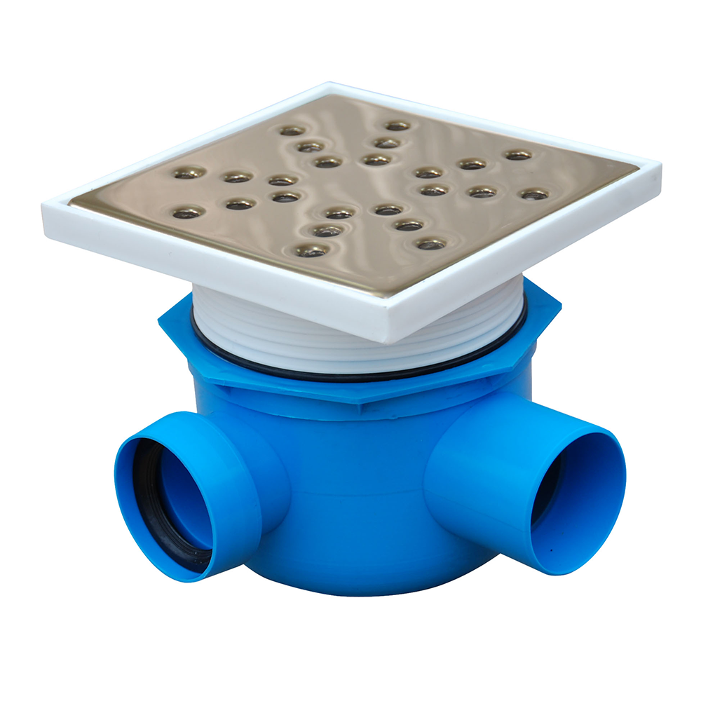 Sifon pardoseala Crimel, PP, DN40 1I-1E DN50, 90° stanga, 15 x 15 cm
