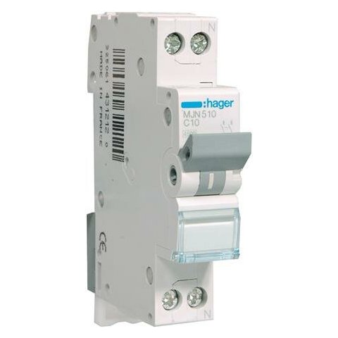 Siguranta automata 1P+N, 10A, 4.5kA, curba C, Hager MJN510