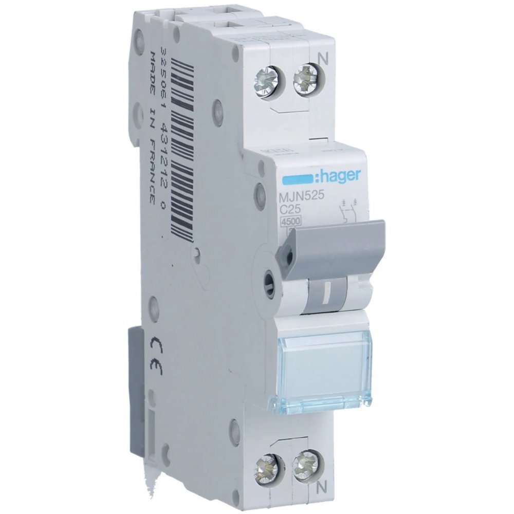 Siguranta automata 1P+N 25A, 4.5kA, curba C Hager MJN525