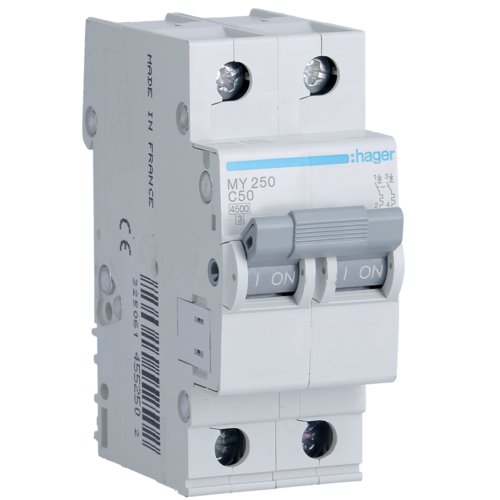 Siguranta automata 2P, 50A, 4,5kA, C, Hager MY250
