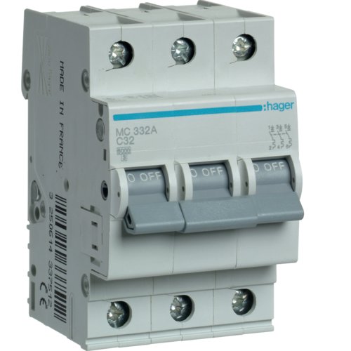 | Tipul polilor | 3 P Curbă: C Curent nominal: 32 A Capacitate de rupere la funcționare nominală |