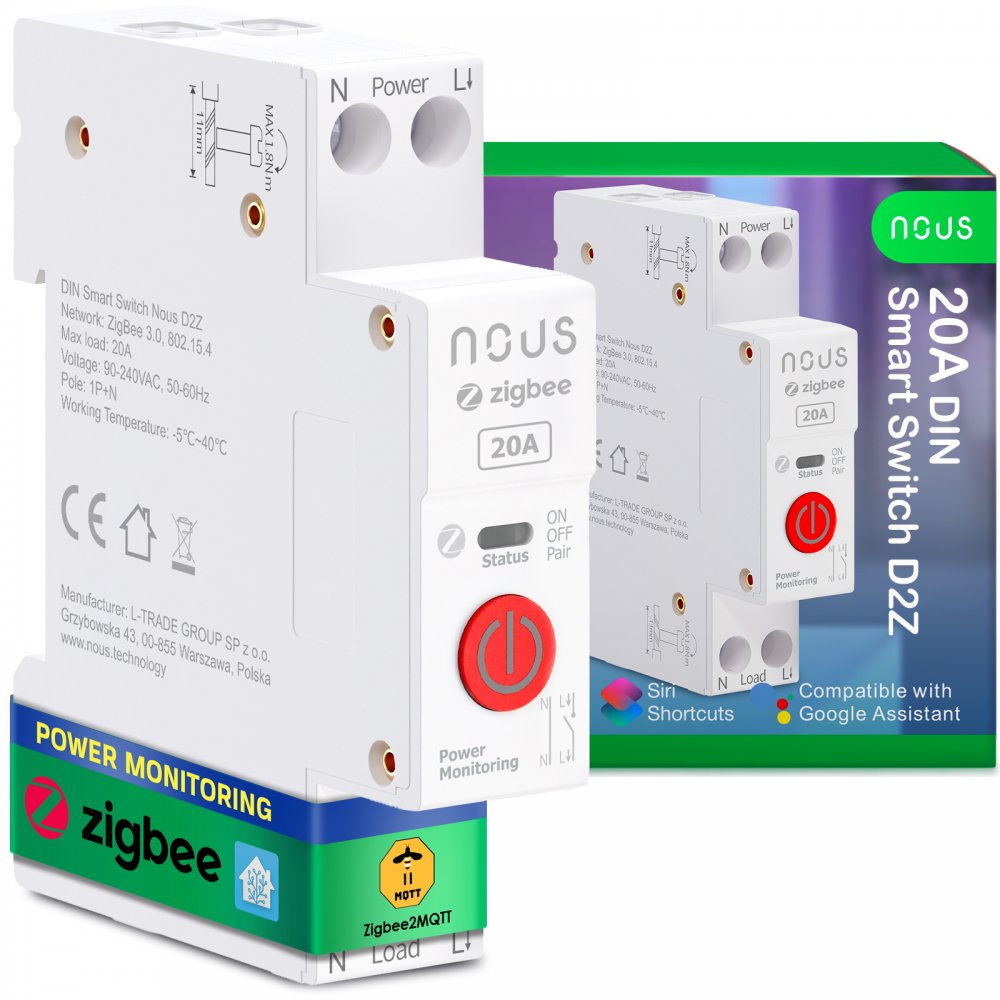 Siguranta inteligenta Nous D2Z, 20A, ZigBee, 1 canal, Monitorizare energie, montare pe sina DIN este o soluție universală pentru controlul dispoziti