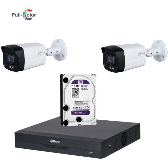 Sistem de supraveghere Dahua DH-2CEXT40MA-5MP_HDD HDCVI cu HDD si 2 camere de exterior de 5MP Full Color, Starlight, LED 40m, microfon